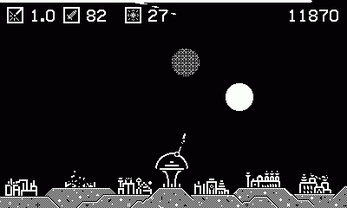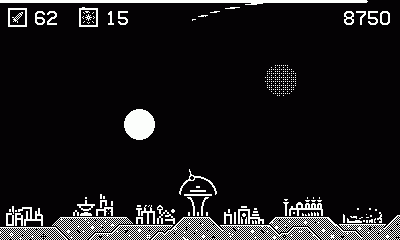 Take command of the sole missile launcher to defend your 6 cities against wave after wave of incoming attack. How long will you be able to protect your cities and keep them alive? Crank to aim, tap the D-pad to fire, and show them you won't go down without a fight!