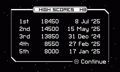 Your top 5 scores are saved on the High Scores screen. Think you can beat your best score?